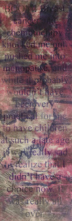 No. 3: "BOOM! Breast cancer and chemotherapy knocked me out, pushed me into menopause, and while it probably wouldn't have been very practical for me to have children at such a late age, it was really sad to realize that I did