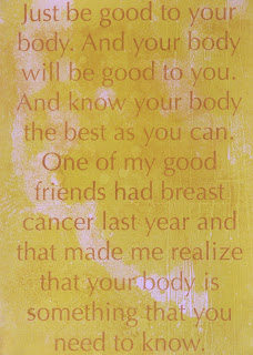 No. 9: "Just be good to your body. And your body will be good to you. And know your body the best as you can. One of my good friends had breast cancer last year and that made me realize that your body is something that you need to know."