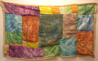 In addition to the works on paper, I printed each image simultaneously onto silk habutai; these prints were then sewn into a quilt as a culmination of the project. I believe that art historically, a quilt is inherently “feminine.” It relates directly to the history of craft, to ideas of Gee’s Bend, War Wives, early settlers; whichever aspect of history you relate it to, quilts were made by women as a subtle art form. Women throughout history have taken pieces of whatever scraps they had in order to assemble something beautiful that held comfort for themselves and their family. I took my “pieces,” these bits of experience and history and sewed them into one. I united the pieces not only to make something beautiful, but to remind the quilt’s viewer that we as women are all the same and we should be offered a sense of unity and comfort from that fact. We may be very different, but underneath, we have intrinsic qualities that link us. We all have pieces, experiences, but it is those common experiences, those shared bonds no matter how small, that make us women. It is what defines us. It is what makes us one.