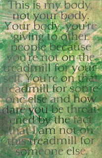 No. 5: "This is my body, not your body. Your body, you're giving to other people because you're not on the treadmill for yourself. You're on that treadmill for someone else and how dare you be threatened by the fact I am not on the treadmill for someone else."