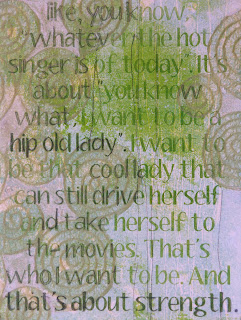 No. 8: "Forget about looking like, you know, 'whatever the hot singer is of today.' It's about, 'you know what, I want to be a hip old lady.' I want to be that cool lady that can still drive herself and take herself to the movies. That's who I want to be. And that's about strength.
